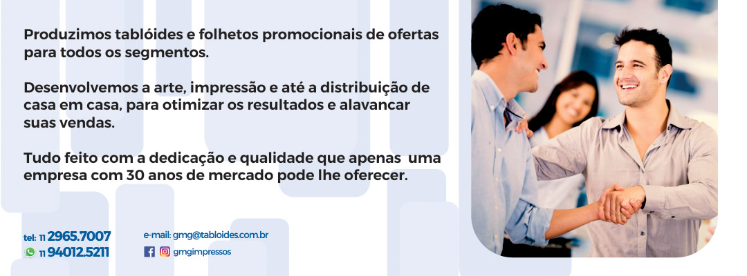 GMG IMPRESSOS E ARTES DIGITAIS: e-mail: gmg@tabloides.com.br - whatsapp: +55 11 94012-5211 - tel: 11 2965-7007